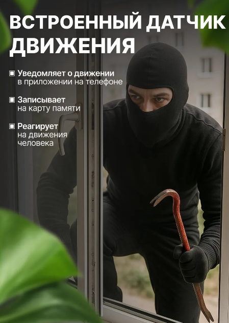 • Оповещение по датчику движения на смартфон в приложении.